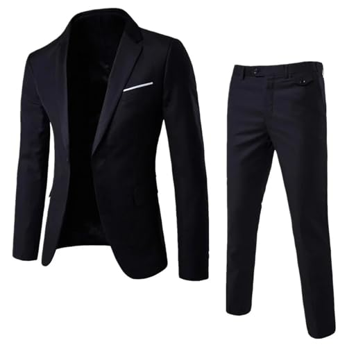 Men's 2-Piece Suit Set - Breathable V-Neck Jacket & Pants for Business & Formal Occasions