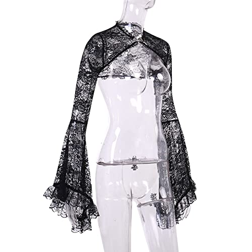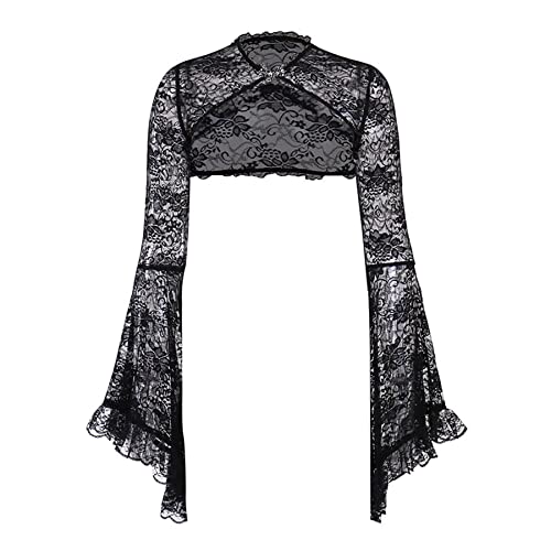 Women Long Sleeve Lace Bolero Shrug Open Front Cropped Cardigan High Neck Sweatshirts
