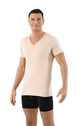 Men's Laser Cut Invisible Seamless v-Neck Undershirt Short Sleeves Stretch Cotton Nude Beige