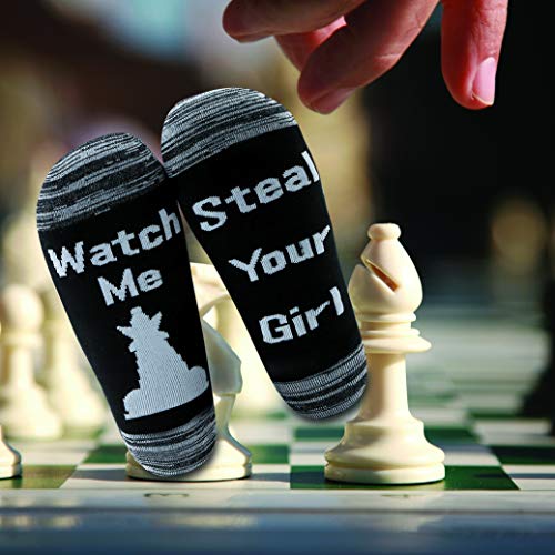 LEVLO Chess Player Gift Watch Me Steal Your Girl Socks Board Game Lover Men