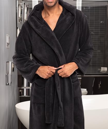 Alexander Del Rossa Mens Robe with Hood, Plush Fleece Hooded Mens Bathrobe, Big and Tall Bath Robe for Men