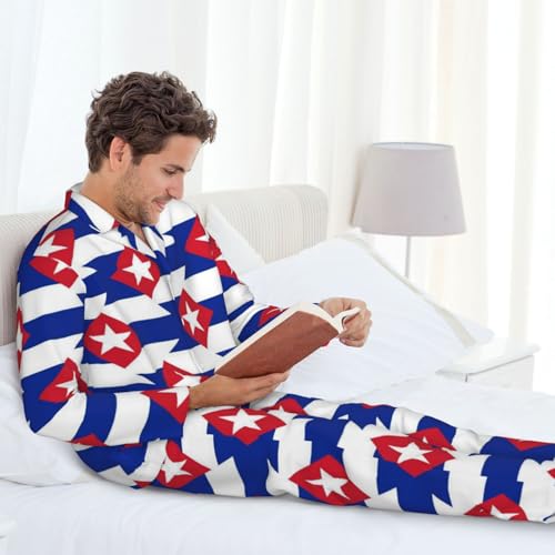 Cuba Flag Mens Pajamas Set Button Down Sleepwear Set Long Sleeve Loungewear With Pockets 1