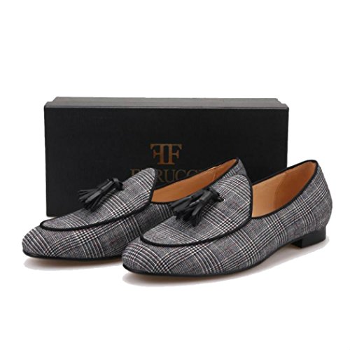 Why Choose FERUCCI Handmade Men Gray Black Striped Fabric Loafer with Tassel Slippers?