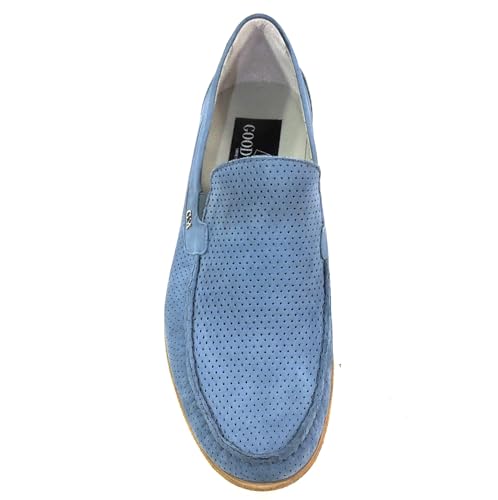 Why Choose Goodman Italian Men's Perforated Nubuck Leather Loafers, Light Blue, Comfort Slip-on Style, Size 44 EU, Made in Italy?