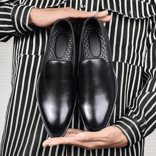Santimon Men's Sleek Leather Slip-On Loafers Comfortable Plain Toe Casual Dress Shoes 6