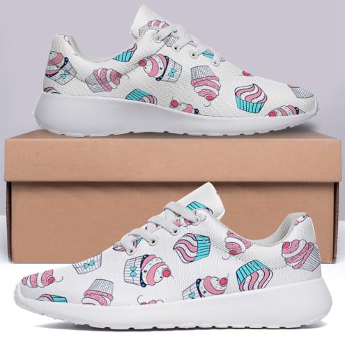 Women Men Cupcake Shoes Personalited 3D Print Running Shoes Athletic Tennis Sneakers