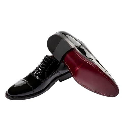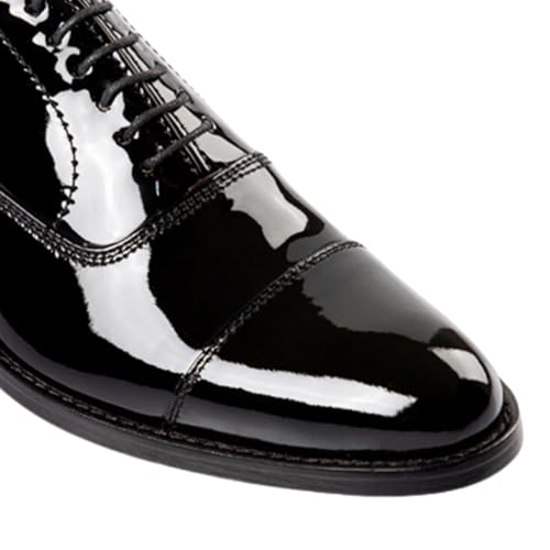 • traditional Design: Patent leather oxford dress shoes featuring a sleek cap-toe design and traditional lace-up closure for timeless formal style
