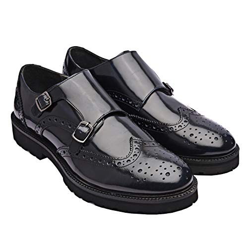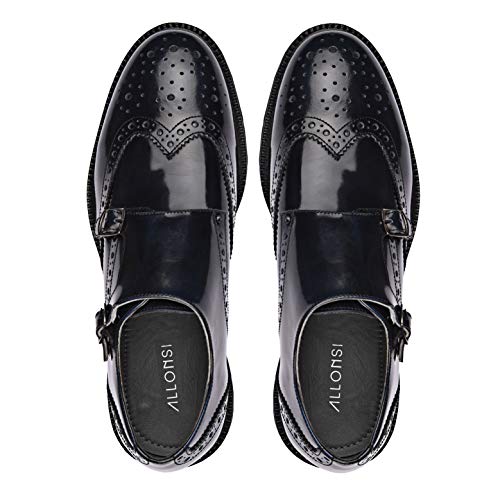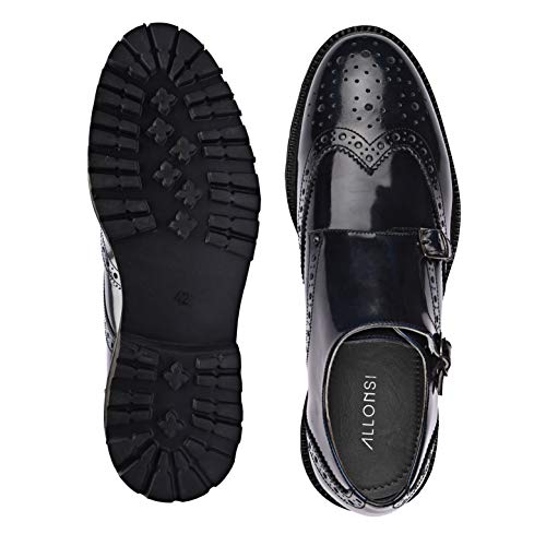 Origin: ImportedSole material: Ethylene Vinyl AcetateOuter material: LeatherClosure type: BuckleCRAFTED IN FULL GRAIN GENUINE COW LEATHER: This Monk strap shoe is made from the most durable and flexible form of Cow leather. Any imperfection in leather is not a defect but rather an evidence of the product being natural.vintage MONK STRAP DESIGN: This plain toe double monk strap is outrageously trendy, featuring special hand-sewn pattern running on the Imported Cow leather with traditional brogue details.SMOOTH LEATHER LINING AND PERFECT FIT BUCKLE CLOSURES: Sheep skin leather lining gives durability with soft flexibility and buckle closures are easily adjustable for the perfect fit.EVA SOLE WHICH OFFERS ADDED FOOT COMFORT: Allonsi always endeavors to produce comfortable men dress shoes. This monk shoe applies an EVA sole which is light, absorbs shock well and offers added comfort to the feet.DOUBLE BUCKLE BRINGS A CLASSIC AND contemporary LOOK: Perfect for the business, office, wedding, or any other formal and casual events. The double buckle design brings a classic and stylish look.