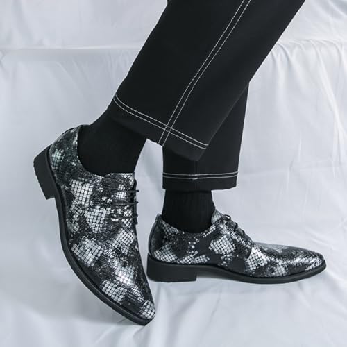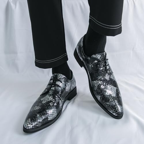 Mens Retro Lace-Up Snakeskin Leather Derby Oxford Shoes Pointed Toe Low Chunky Heels Non-Slip Dress Casual Shoes for Business Casual Dress Prom Party 6