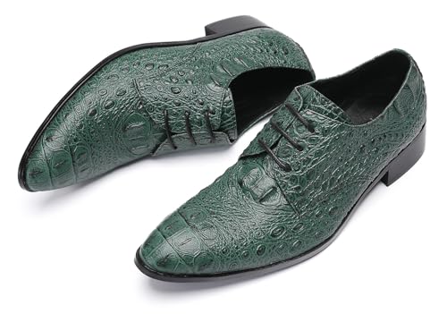 Santimon Men's Genuine Leather Oxfords Dress Shoes - Exotic Crocodile Pattern Lace-Up Formal Shoes, Premium Non-Slip Sole Derby for Business, Wedding and Formal Events 7