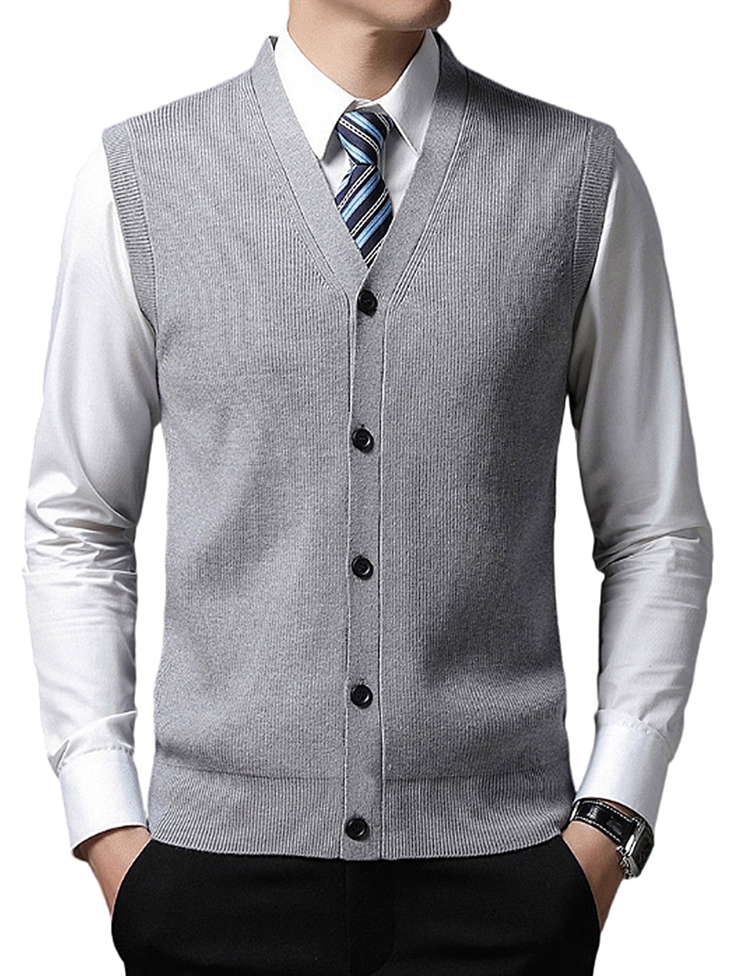sought-after ! "Elevate Your Formal Wear: Sleeveless V-Neck Cardigan for Men Official, Formal, and Timeless"