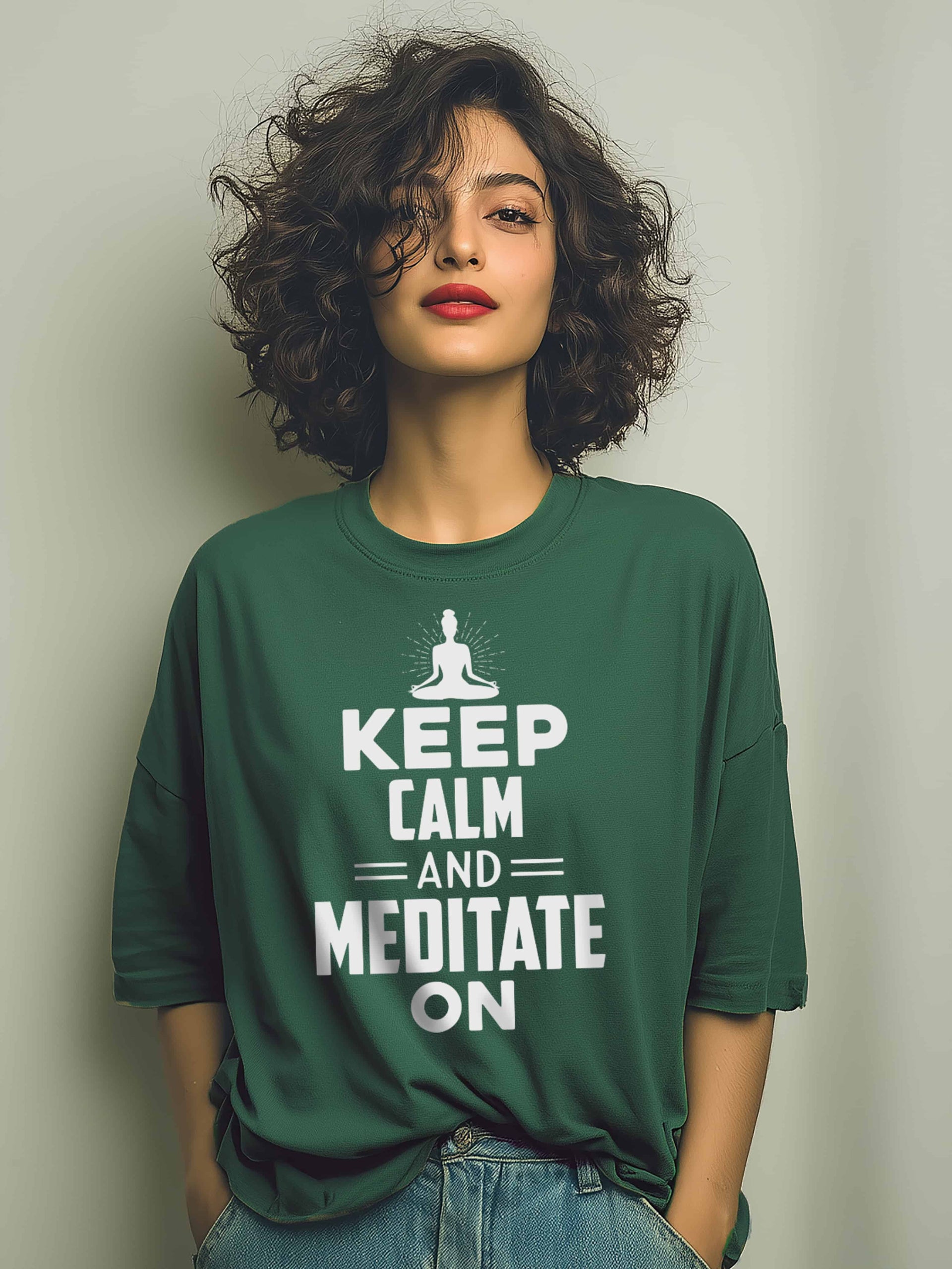 "Keep Calm and Meditate On" Women's Cotton Oversized T-Shirt 1