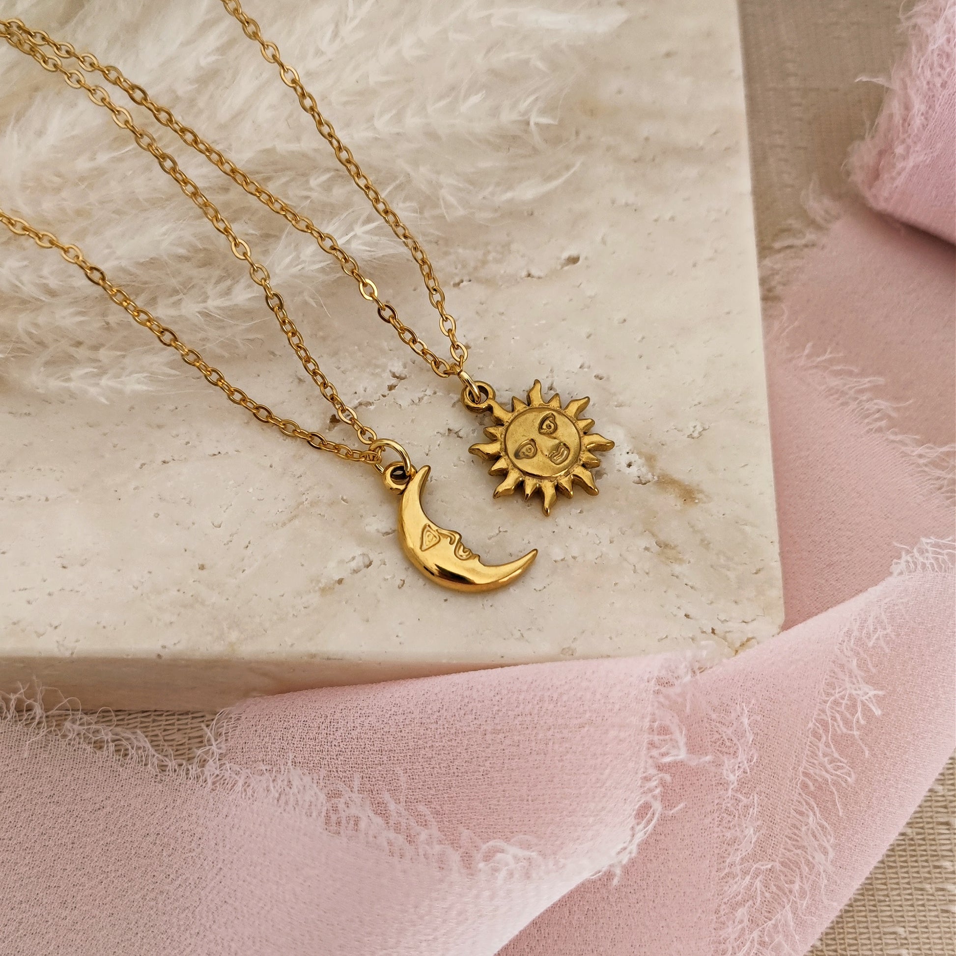 sought-after ! "Sun Moon" necklaces with Sun and Moon for couples, gold Set (Sun Moon) 40 cm