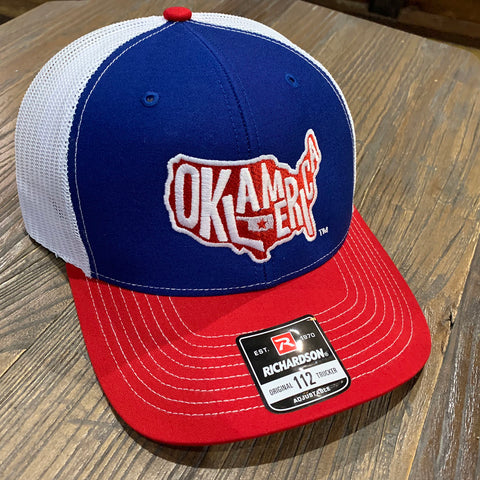 "Oklamerica" Red, White Blue Mesh Trucker Cap