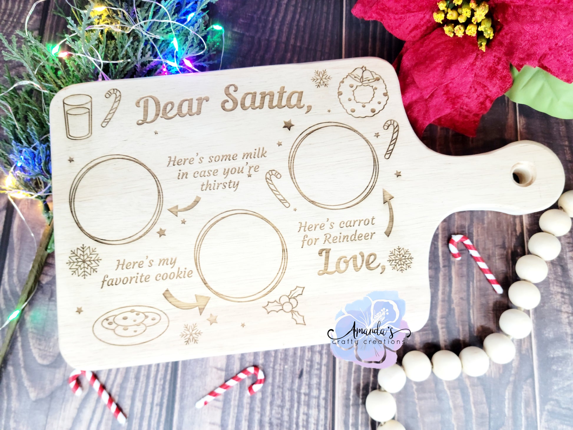 More information about "Dear Santa" Engraved Cutting Board, Santa's treats cutting board, Christmas, Treats for Santa and the reindeer, kitchen, engraved, kitchen decor​