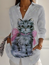 This Women's Shirt Cat Active Daily chic Long Sleeve Shirt Collar Regular Tops Daily Holiday Buttons Print Black Gray Spring Fall combines elegant design with practical functionality. Every detail has been carefully considered to ensure you get the best possible experience. The supreme construction means this product will serve you well for years to come.