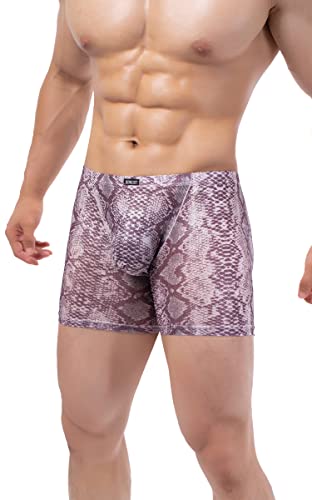 iKingsky Men's Snake Skin Pattern Long Leg Boxer Sexy Pouch Trunks Breathable Bulge Short Under Panties for Men