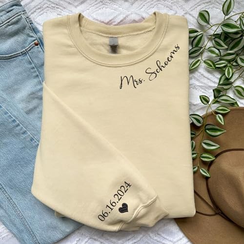 Noni Custom Mrs. Embroidered Sweatshirt,Date On Sleeve,Gift For Bride,Future Mrs. and Mr. Hoodie,Engagement Gift