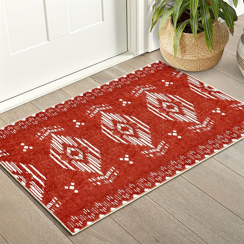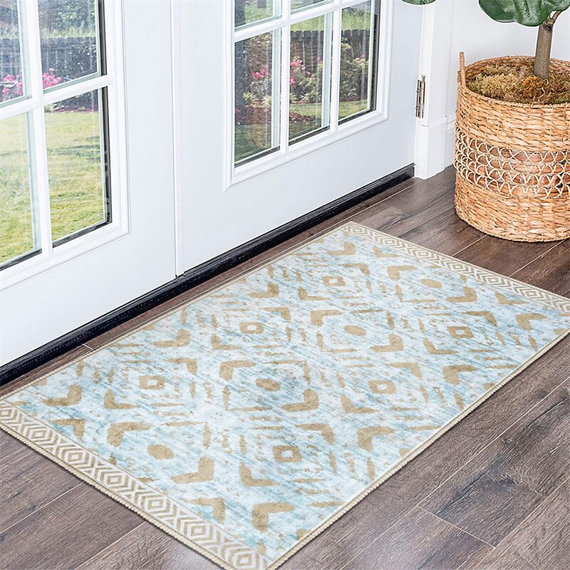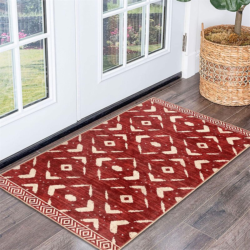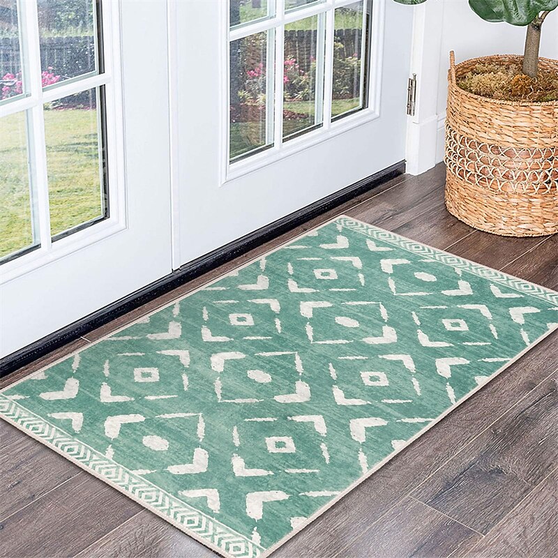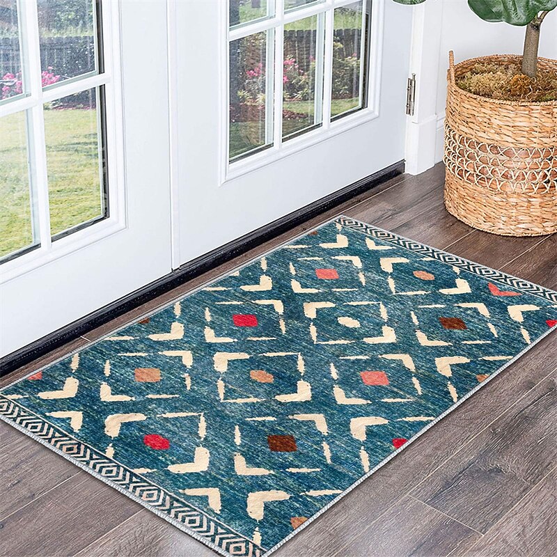 Highlights 【Breathtaking Moroccan Design】Our area rug showcases a captivating Moroccan geometric pattern, injecting an elegant and exotic touch into your home decor. Its low-pile design, with its intricate structure and refined texture, instantly transforms any room into a more appealing space. 【Quality Craftsmanship】 Expertly crafted from high-grade polypropylene, the dorm rug provides a silky texture that is a joy to touch, while ensuring durability. Built to withstand the demands of high-traffic areas, it retains its beauty and integrity even with regular use. 【Easy Maintenance】In keeping with the demands of contemporary living, our rug is fully machine-washable. Preserve the cleanliness and freshness of your rug with easy, hassle-free cleaning - a perfect blend of style and practicality. 【Enhanced Safety Features】The washable rug comes equipped with a reliable non-slip backing, safeguarding your home by firmly securing its position on all types of floor surfaces. It effectively prevents slips and falls, making it a safe choice for your home. 【Available in Various Sizes】To accommodate different space requirements, we offer our kitchen rug in multiple sizes. Whether you're looking to decorate a spacious living room, a cozy bedroom, or a narrow hallway, bathroom, kitchen, patio and so on, we have the perfect size to meet your needs.