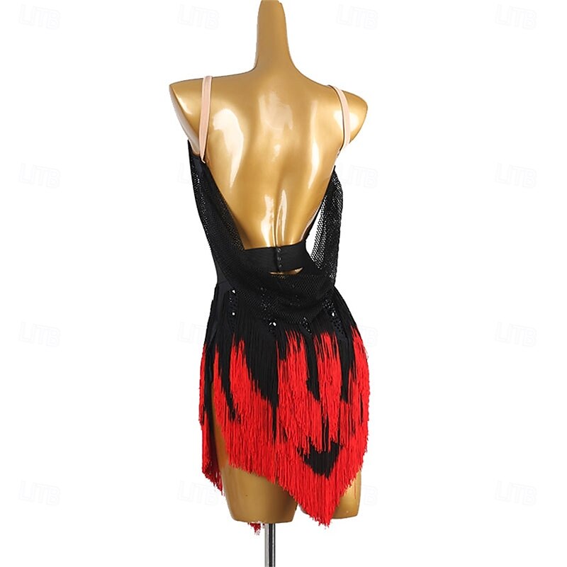 $266.19 - Women's Black and Red Latin Dance Dress with Sequin Detailing, Fringe Skirt, Adjustable Straps – Ideal for Salsa, Cha Cha, and Performance Wear 2025. Shop for cheap Competition Dress online? Buy at lightinthebox.com on sale today!