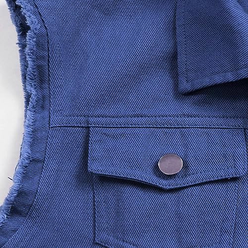 Women's Lapel Blue Denim Vest Buttoned Vest Jacket 5