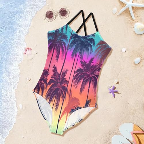 Girl's One Piece Swimsuit Sunset Coconut Tree Beach Bathing Swimwear 1