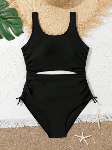 OYOANGLE Girl's Cut Out Drawstring Side One Piece Swimsuit Sleeveless Scoop Neck Bathing Suit Swimwear 1