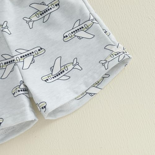 Toddler Baby Boy Summer Outfit Airplane Pilot Short Sleeve T-shirts Tops Plaid Shorts Set Infant Planet Clothes Set 7