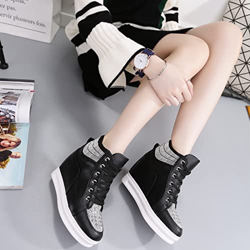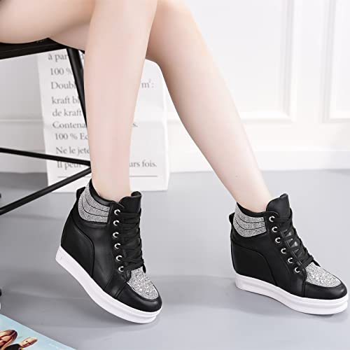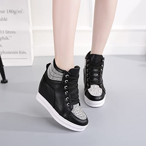 rismart Women's High Top Wedge Fashion Sneakers Glitter Lace up Ankle Bootie 7
