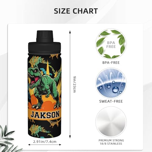Custom Dinosaur T-Rex Kids Backpacks 2pcs Set for Boys Girls Student Personalized Name Text School Bag and 18 Oz Water Bottle Customized Sports Water Bottle School Bookbags for Back to School Travel 5
