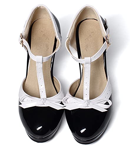 Caradise Womens High Heel T Strap Mary Jane Patent Pumps with Bow Rockabilly Dress Shoes