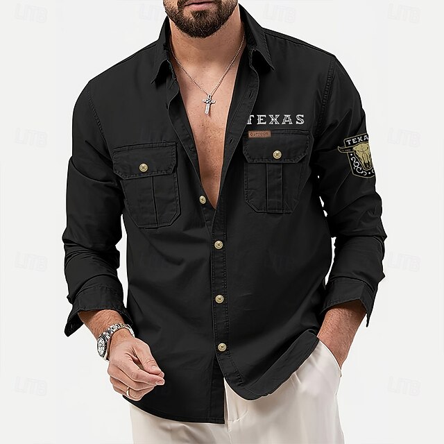 Why Choose Men's Texas Cow Print Work Shirt Western Shirt Cargo Shirt Long Sleeve Casual Tactical Sports & Outdoor Going out Winter Spring & Fall Turndown Print Black Army Green Khaki Beige?