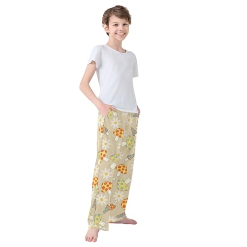 Mushroom Flower Boys Pants Boys Athletic Pants Long Pant for Boywith Pockets Wide-Leg Size 6-14Y 4