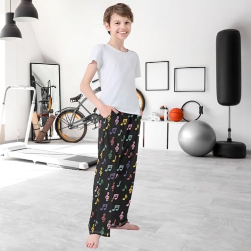 Boy's Pants Music Note Background Jogger Pants Elastic Waist Long Bottoms Trousers with Pockets 6-14 Years