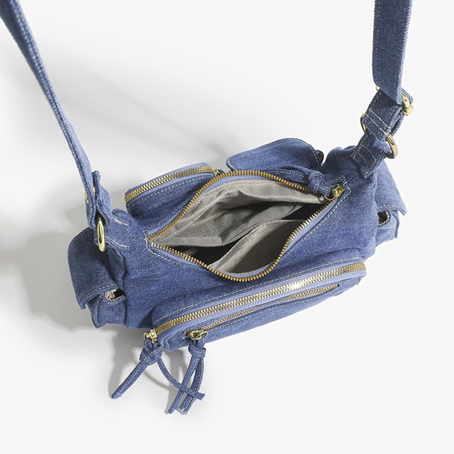 sought-after ! Denim Crossbody Bag Purse, Trendy Jean Purses for Women Denim Shoulder Bags Handbags Tote Bags Chic Street Satchel (Blue)