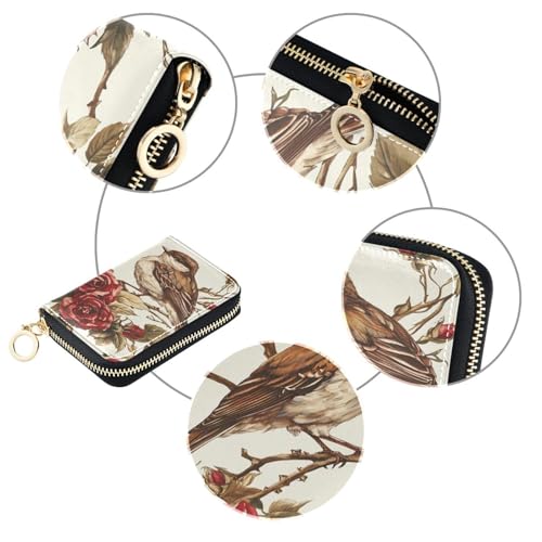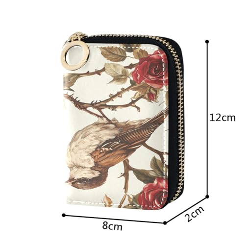 sought-after ! Small RFID Credit Card Holder Wallet with Zipper, Leather Wallet Case for Women Birds Red Roses