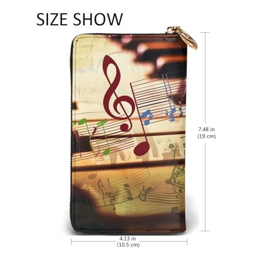 Music Printed Long Wallet for Women Men Cute PU Leather Wallet with Coin Purse and Credit Card Holder