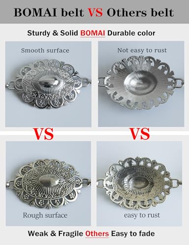 Why Choose Western Concho Chain Belt for Women Boho Cowgirl Metal WaistChain with Turquoise (01-silver, Length 53" (36"+extended chain 17"))?