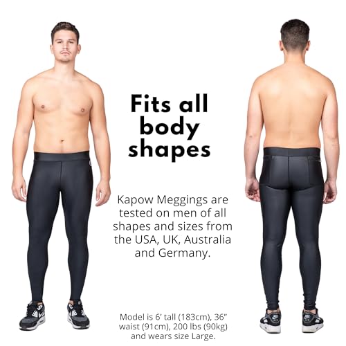 sought-after ! Kapow Meggings Supreme Range - Deluxe Sport Wear Compression Leggings for Men, Fashion Activewear for Yoga & Gym with Pockets